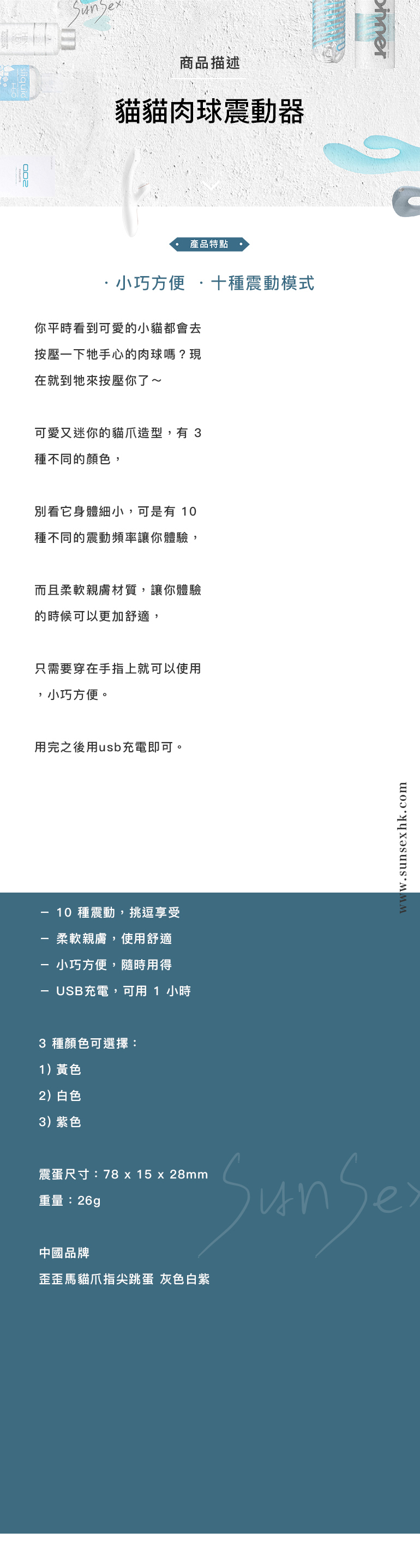 貓貓肉球震動器 - 黃 / 紫 / 白色