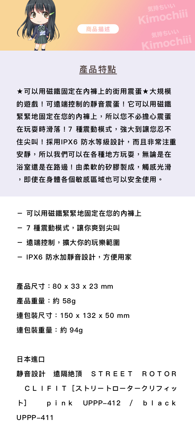 防水靜音 遠端控制 STREET ROTOR CLIFIT 內褲震蛋 - 粉色 / 黑色
