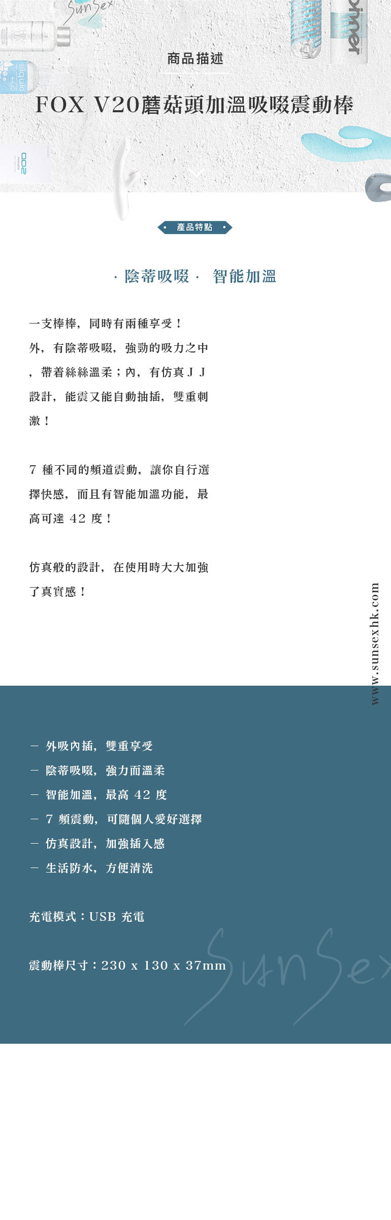 FOX V20蘑菇頭加溫吸啜震動棒