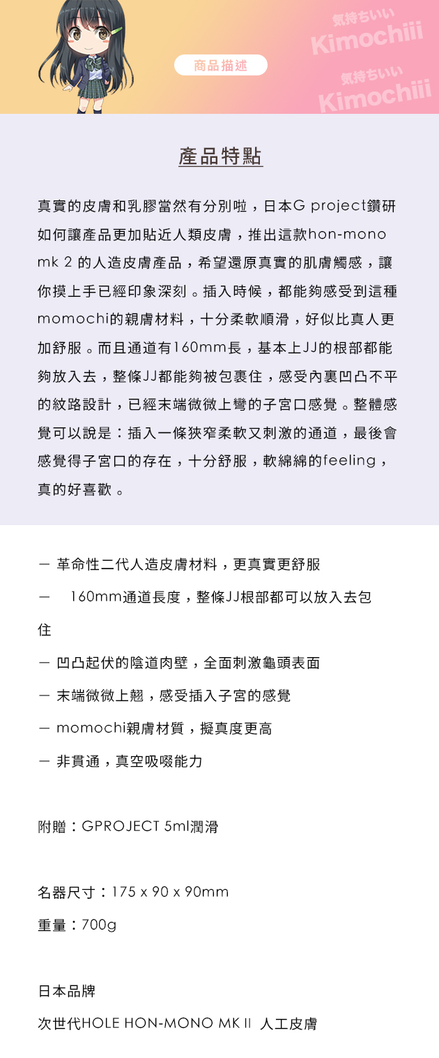 G Project Hole Hon-Mono 二代人造皮膚少女觸感名器