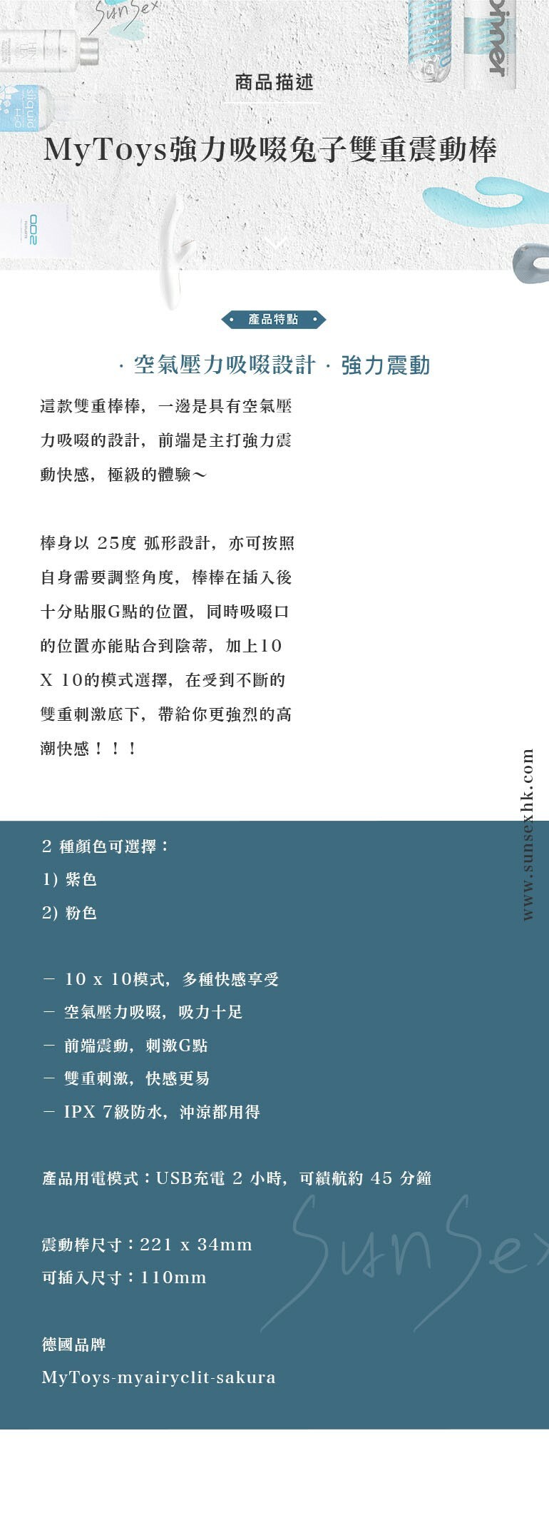 MyToys強力吸啜兔子雙重震動棒 - 紫色/粉色