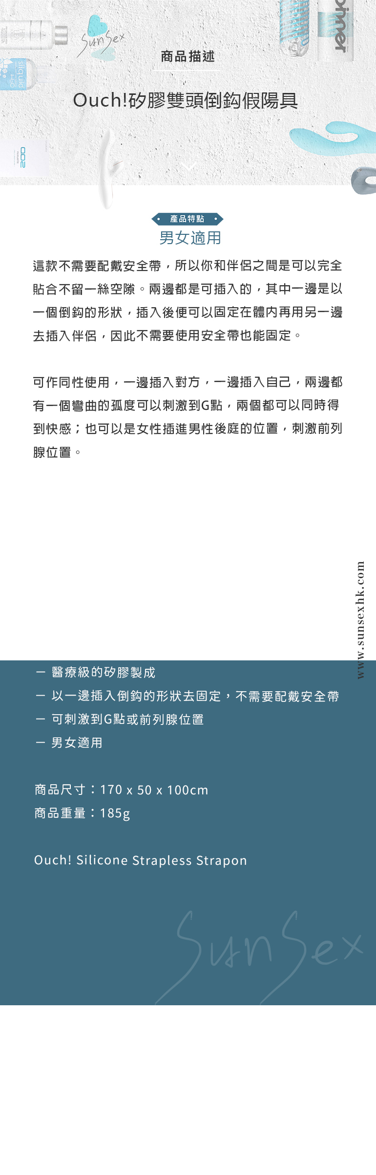 Ouch!矽膠雙頭倒鈎假陽具