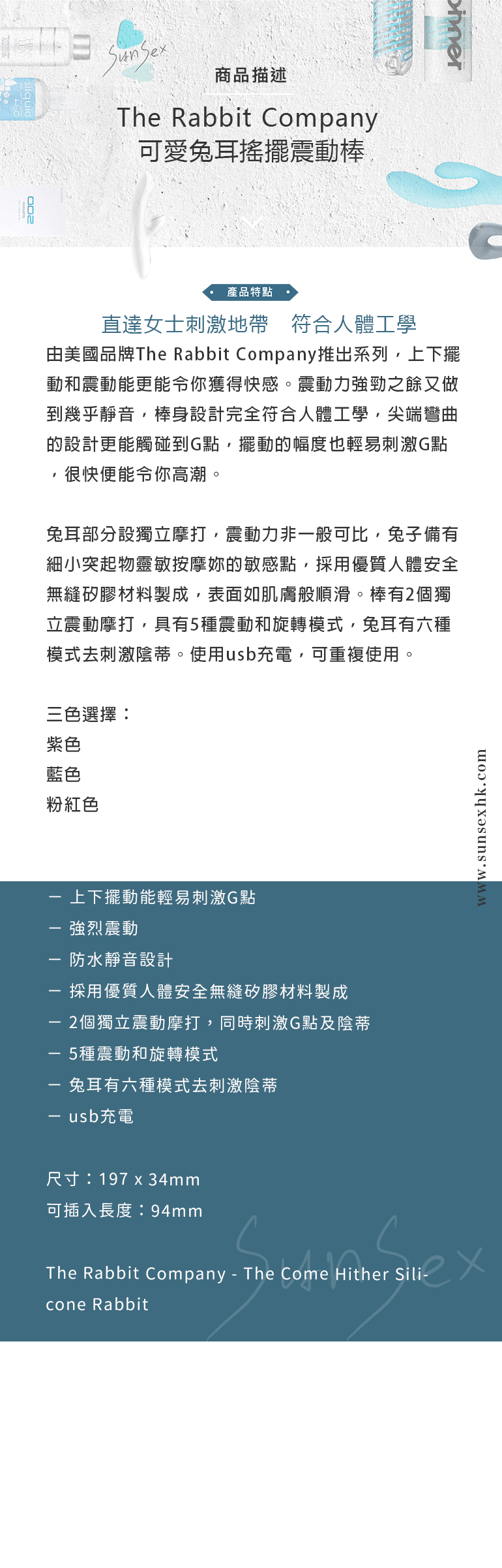 The Rabbit Company 可愛兔耳搖擺震動棒 - 紫色/藍色/粉紅色